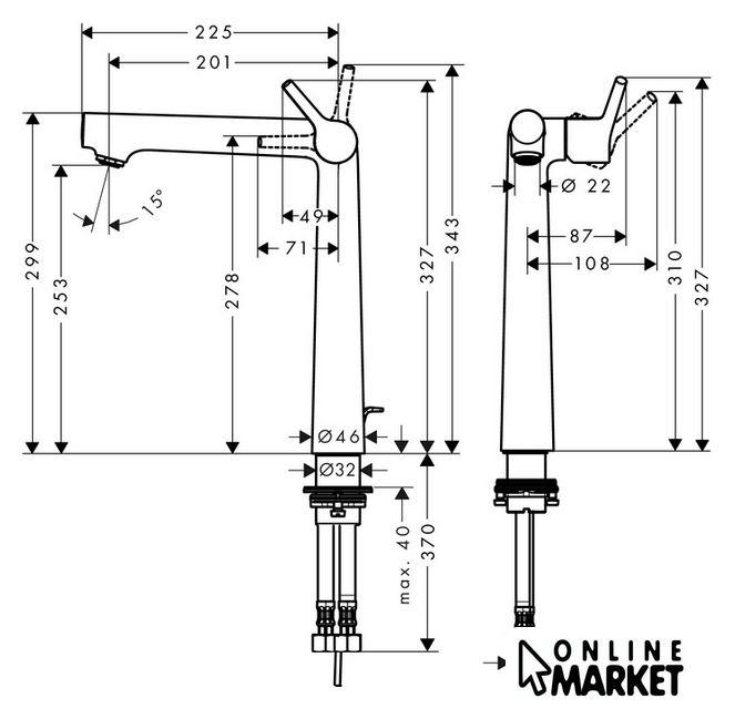 | Высота излива | 253 мм |