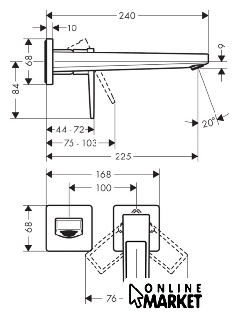 Длина (вылет) излива | 225 мм |