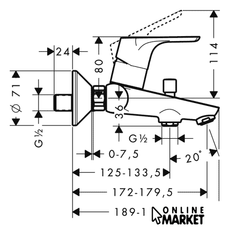Длина (вылет) излива | 179.5 мм |