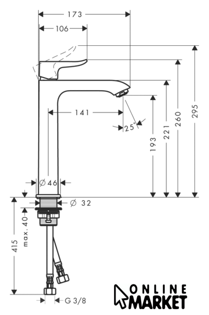 | Длина (вылет) излива | 141 мм |