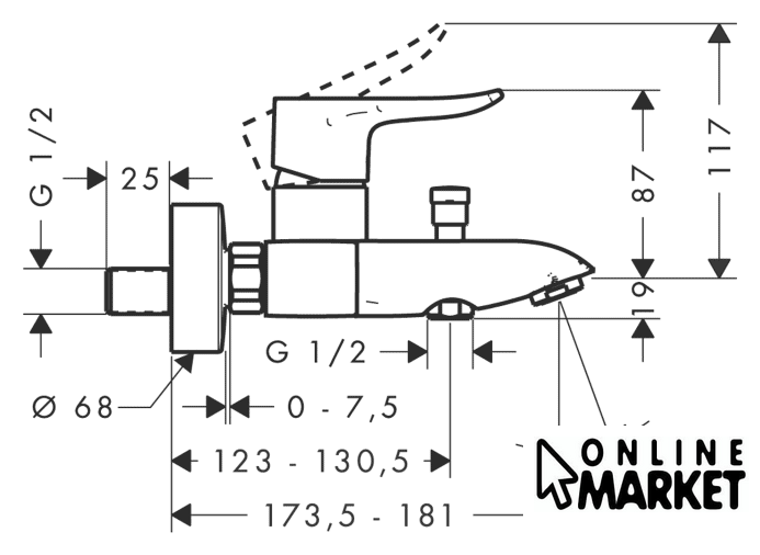 | Длина (вылет) излива | 181 мм |
