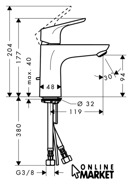 Длина (вылет) излива | 119 мм |