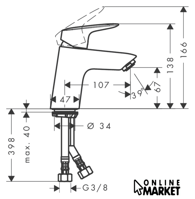 | Длина (вылет) излива | 107 мм |