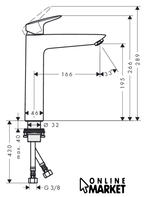 | Длина (вылет) излива | 166 мм |