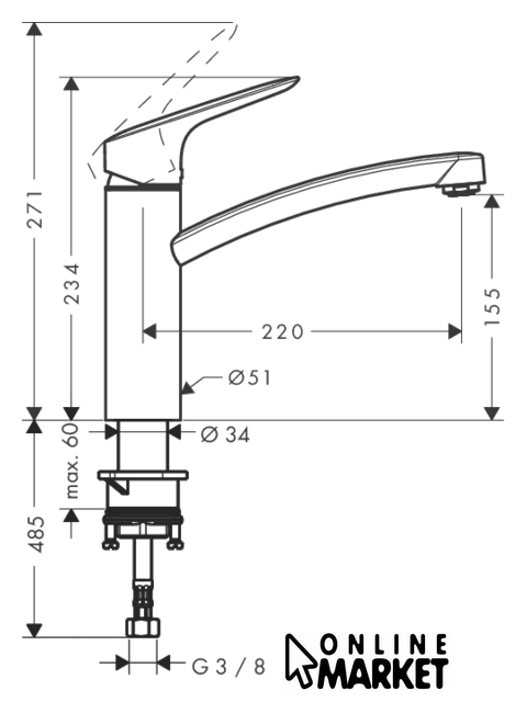 Длина (вылет) излива | 220 мм |