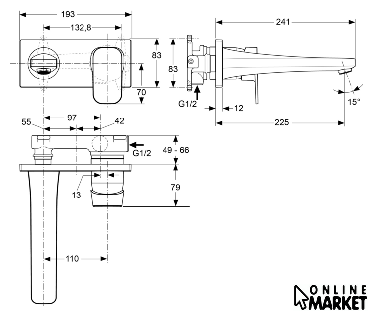 | Длина (вылет) излива | 225 мм |