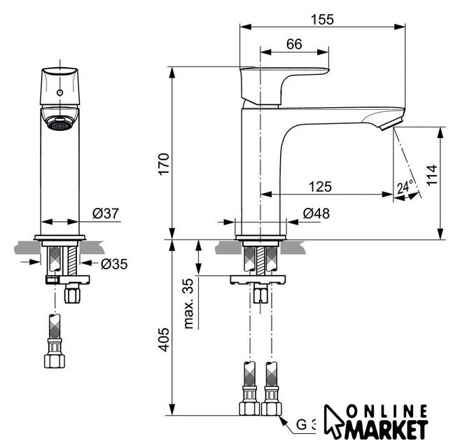 | Длина (вылет) излива | 125 мм |
