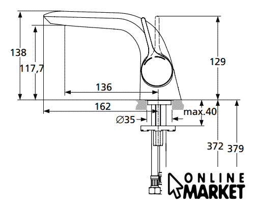 | Длина (вылет) излива | 136 мм |