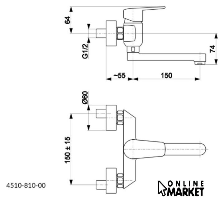 | Длина (вылет) излива | 150 мм |