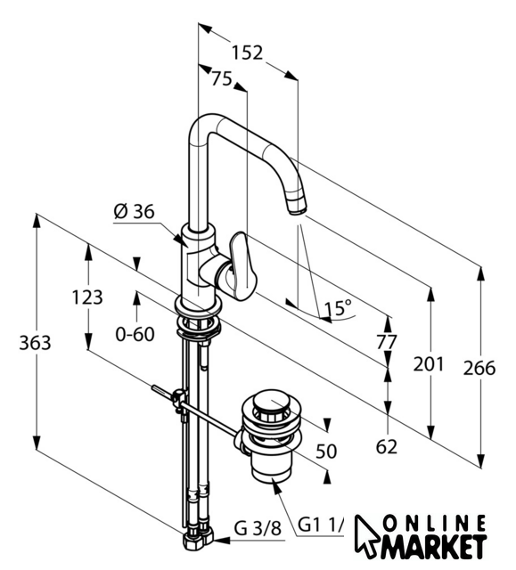 | Длина (вылет) излива | 152 мм |