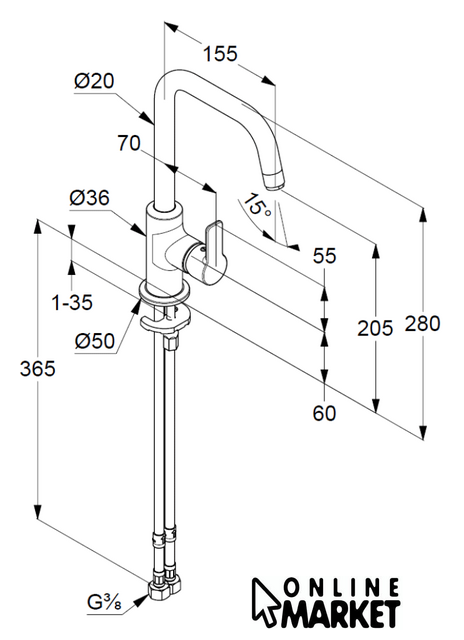 | Длина (вылет) излива | 155 мм |