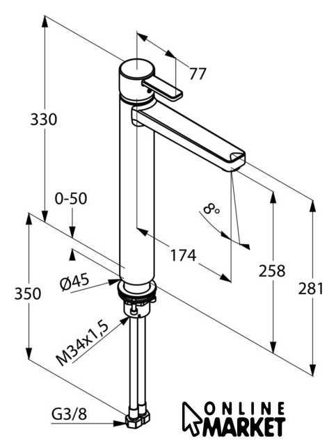 | Высота излива | 258 мм |