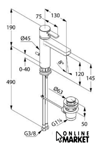 | Длина (вылет) излива | 130 мм |