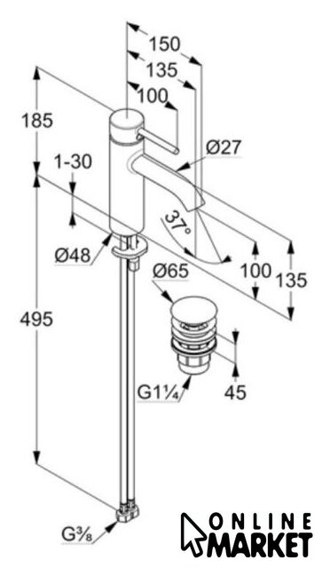 Длина (вылет) излива | 135 мм |