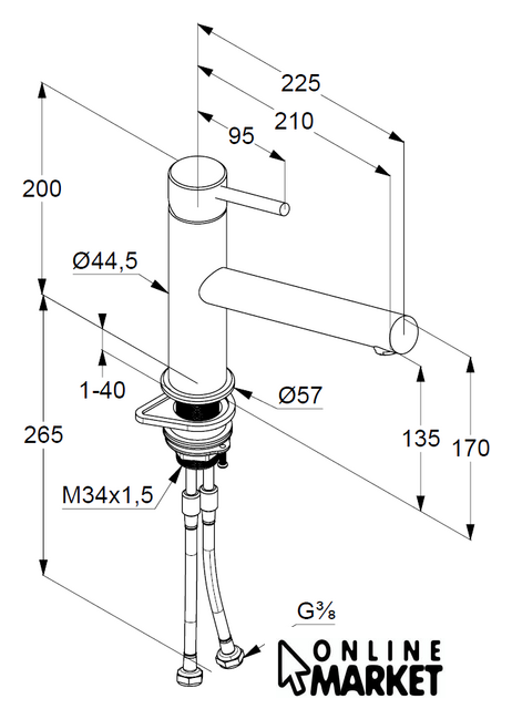 | Длина (вылет) излива | 210 мм |
