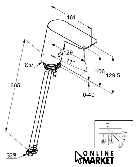 | Длина (вылет) излива | 129 мм |