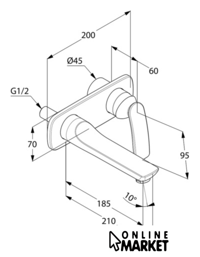 | Длина (вылет) излива | 185 мм |