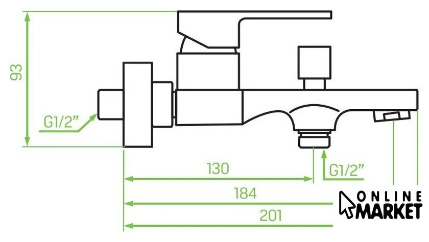 | Длина (вылет) излива | 184 мм |
