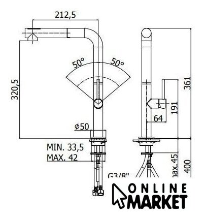 | Высота излива | 321 мм |