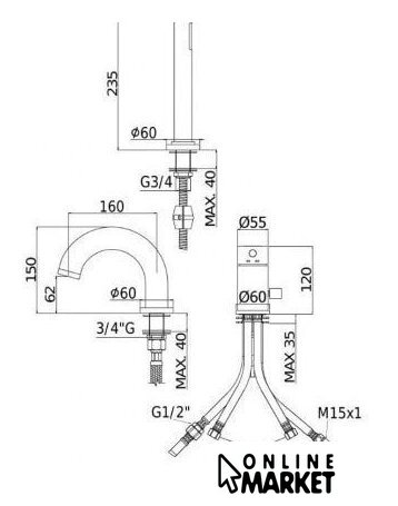 Длина (вылет) излива | 160 мм |