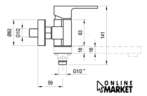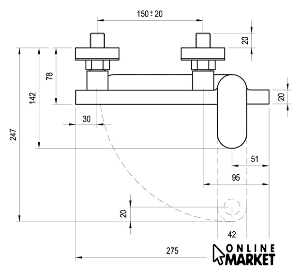 | Длина (вылет) излива | 227 мм |