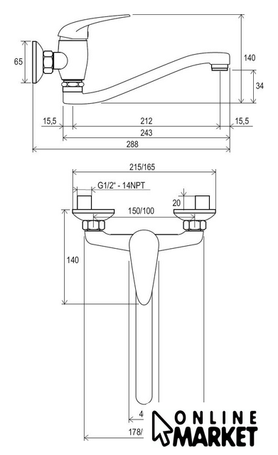 | Длина (вылет) излива | 212 мм |