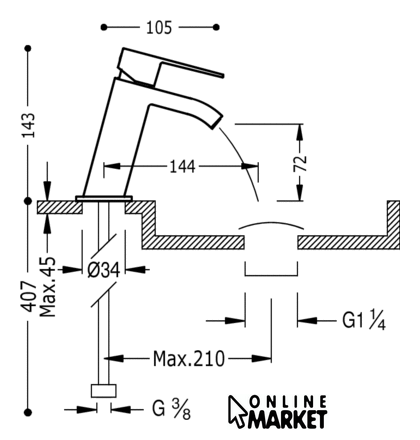 | Длина (вылет) излива | 144 мм |