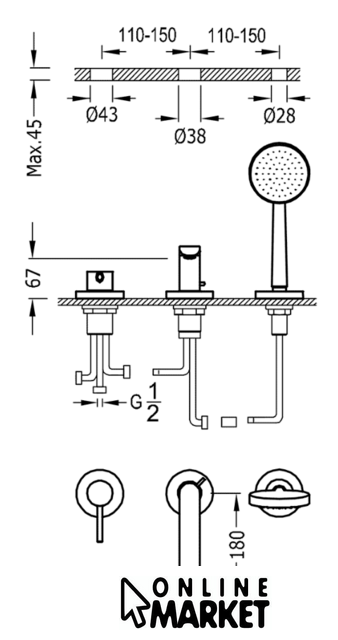 | Монтаж | на ванну или полку |