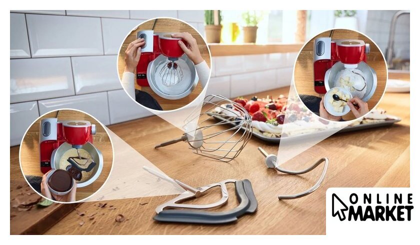 | Функции | блендер, взбивание, смешивание, замешивание дрожжевого теста, терка, шинковка, ломтерезка, драники |