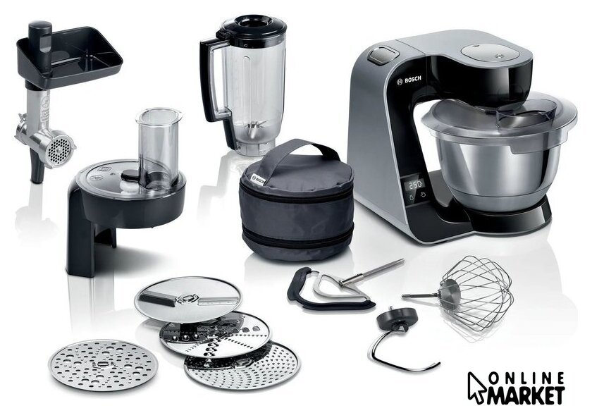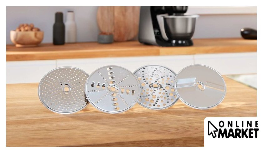 Полная комплектация | насадка для смешивания с силиконовым покрытиемнасадка для взбиваниякрюк для замешивания4 сменных диска из нержавеющей стали (6 функций): реверсивный диск для нарезки ломтиками (крупная и мелкая), реверсивный диск для нарезки ломтиками (крупная и мелкая), диск для мелкой терки и диск для нарезки картофеля драникамичаша блендера 1.25лпрозрачная крышка чаши для защиты от брызгмясорубкакейс для хранения оборудования |