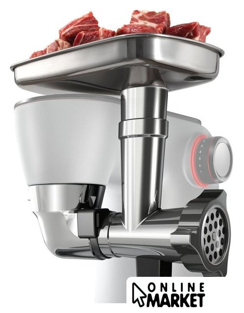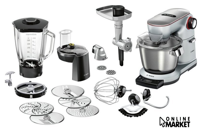 | Функции | мясорубка, блендер, взбивание, смешивание, замешивание дрожжевого теста, измельчитель, рубка, терка, шинковка, ломтерезка, нарезание кубиками, драники |