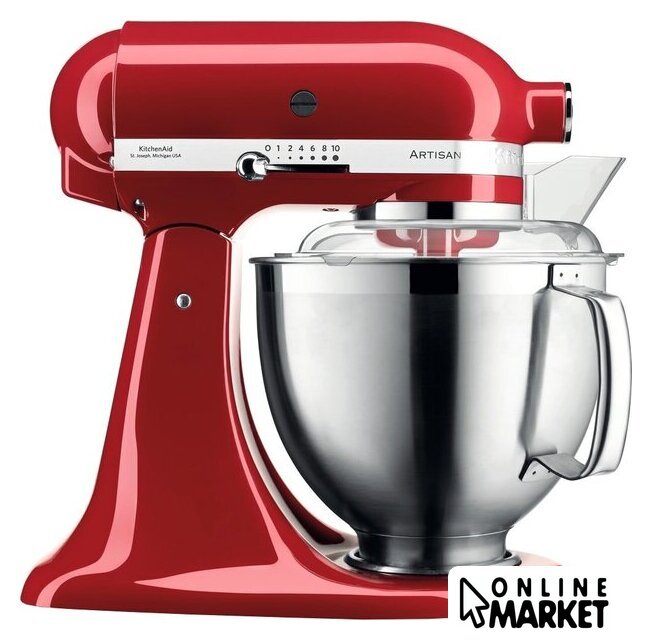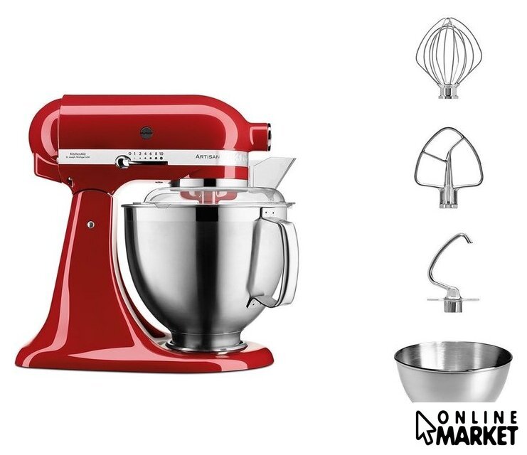Полная комплектация | Чаша из нержавеющей стали объемом 4,8 лЧаша из нержавеющей стали объемом 3 лПрозрачный защитный ободВенчикКрюк для тестаНасадка для смешивания |