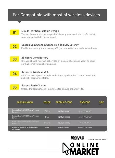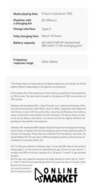 | Быстрая зарядка | 10 минут подзарядки - 2 часа воспроизведения |