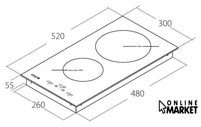 | Подробная информация о конфорках | 1 x 2000 Вт (210 мм)1 x 1600 Вт (145 мм) |