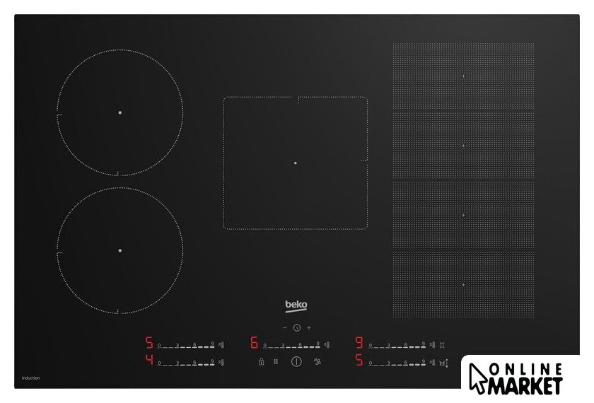 Подробная информация о конфорках | Передний левый Ø180 мм - 1500/2000 Вт (Макс./Ускорение) Передняя правая зона 2x (92,7 x 200 мм) – 2400/3600 Вт (макс./ускорение) Задний левый Ø180 мм - 1500/2000 Вт (Макс./Ускорение) Задний правый 2x (92,7 x 200 мм) – 2400/3600 Вт (макс./ускорение) Центральная зона 190x210 мм — 2400/3600 Вт (макс./ускорение) |