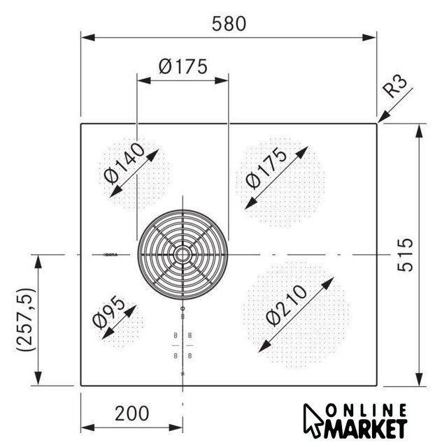 | Подробная информация о конфорках | Задняя левая конфорка - диаметр 140 мм, мощность 900 Вт (максимум 1350 Вт); задняя правая конфорка - диаметр 175 мм, мощность 1400 Вт (максимум 2100 Вт); передняя левая конфорка - диаметр 95 мм, мощность 400 Вт (максимум 600 Вт); передняя правая конфорка - диаметр 210 мм, мощность 2300 Вт (максимум 3000 Вт) |