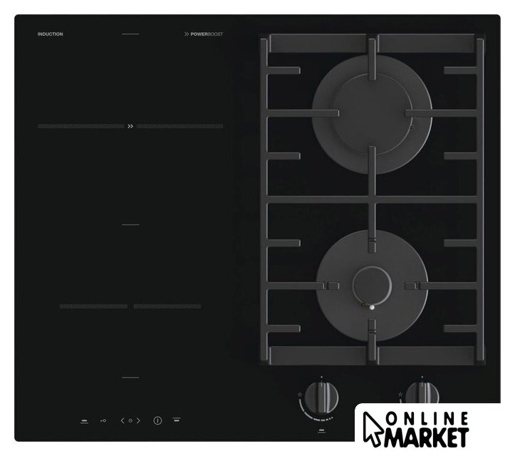 Подробная информация о конфорках | 2 индукционные + 2 газовые конфоркиПередняя левая: Ø 16 см, 1.4 кВт,Передняя правая: 1 кВт,Задняя левая: Ø 20 см, 2.3/3 кВт,Задняя правая: 3 кВт |
