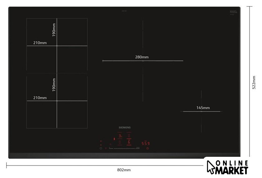 Подробная информация о конфорках | 1 x 1.6 (2.2) kW, 1 x 3.0 (3.7) kW, 2 x 2.5 (3.7) kW |