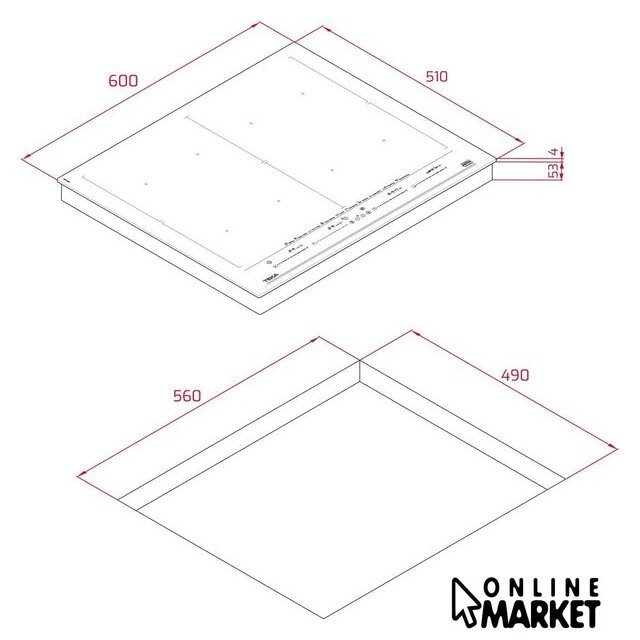 Подробная информация о конфорках | -4 зоны 263 x 195 мм-2 Flex зоны 263 x 390 мм-1 Full Flex зона 525 x 390 мм |