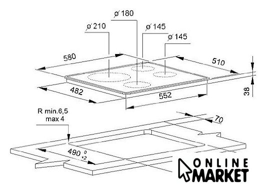 | Количество конфорок | 4 |