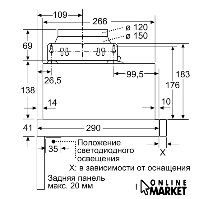 | Диаметр воздуховода | 120 мм, 150 мм |