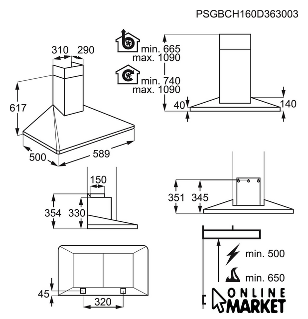 | Минимальная производительность отвода | 256 куб. м/ч |