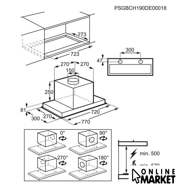 | Минимальная производительность отвода | 300 куб. м/ч |