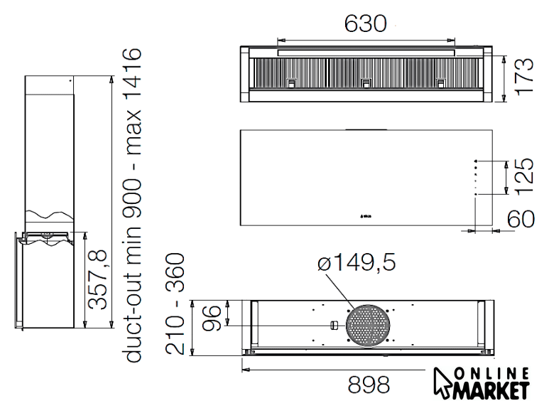 | Диаметр воздуховода | 150 мм |