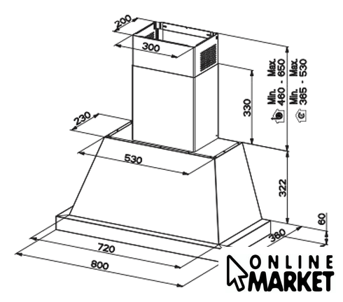 | Минимальная производительность отвода | 320 куб. м/ч |