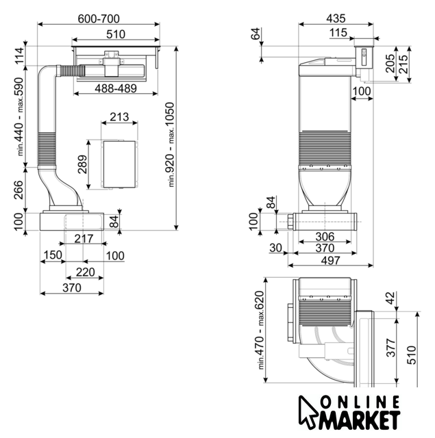 | Минимальная производительность отвода | 370 куб. м/ч |