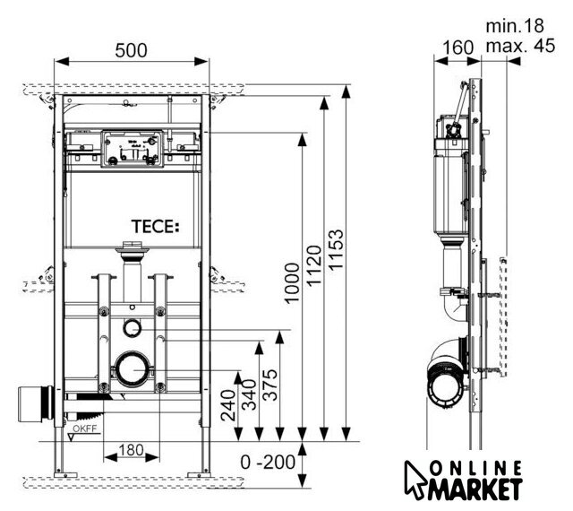 | Отверстия под унитаз | 180 мм, 230 мм |