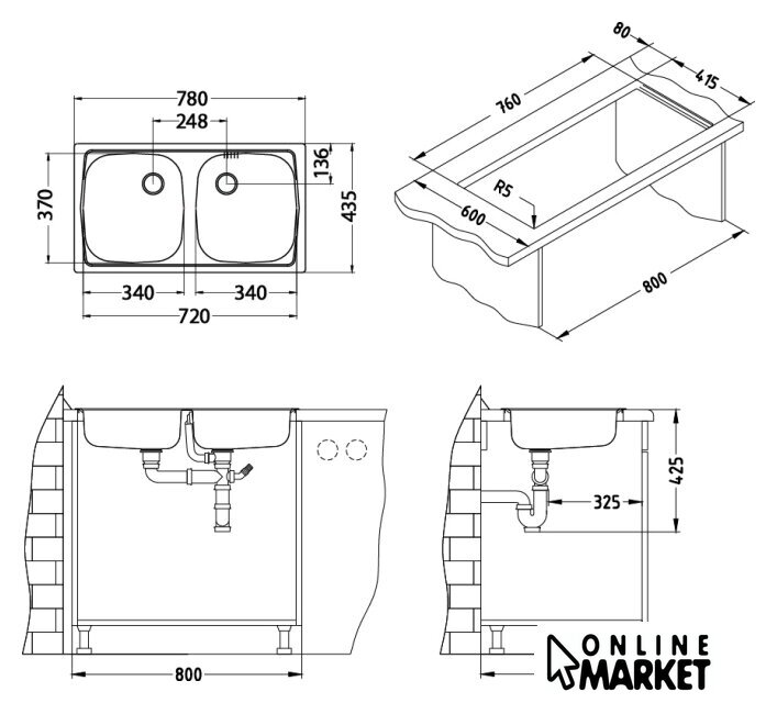 | Ширина мойки | 78 см |