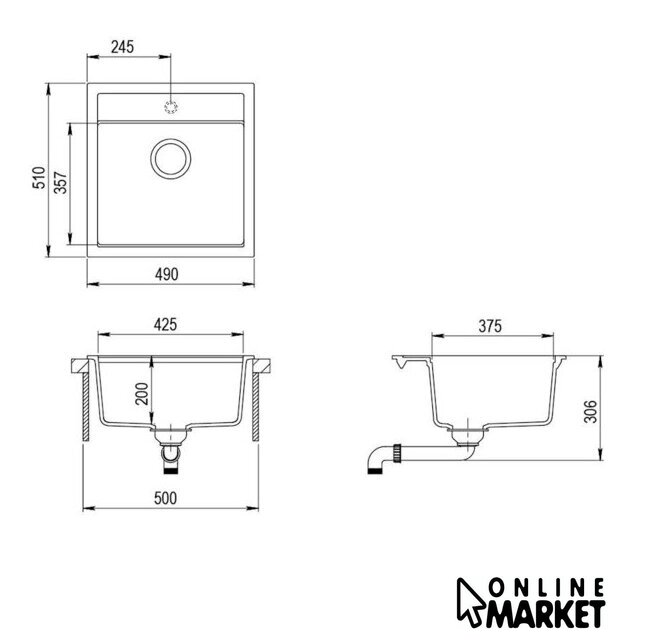 | Диаметр сливного отверстия | 3.5" |