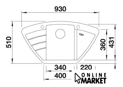 врезная на столешницу, искусственный камень, размеры: 93x51 см, в шкаф 90 см
